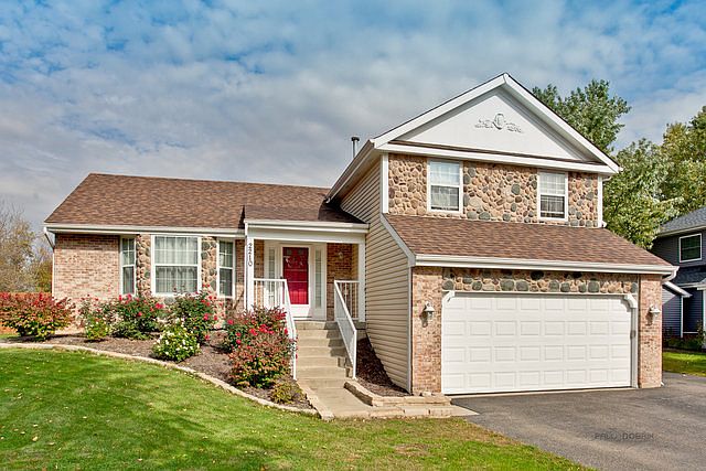 Beautiful Split with almost everything new and remodeled in the last 4 years including Roof, Furnace, AC and Appliances! Decorative Exterior Stone and Brick Front with Expert Landscaping. 2 Car Garage with additional Side Drive. Ceramic Tiled Entryway with Mosaic Design leading to Kitchen with Bay Window, Granite Counters, SS Appliances, Stove with Grill and Eating Area. Vaulted Ceilings enhance the Open Floor Plan. Enjoy the bright Living Room with Bay Window and Ceiling Fan, and Dining Room with Hardwood Floors . Plenty of room for entertaining in the Lower Level Family Room with In-Set Lighting, Ceramic and Wood Floors and Sliding Glass Doors leading to the inviting Patio with Gorgeous Custom Built Full Masonry Fireplace and Huge Yard with Dog Run. Close to Highways and Shopping. Come Fall in Love!