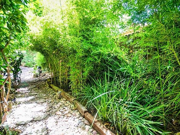 Mature treesUpstairs balconyLush plantsSparkling swimming poolPrivate bathroomDownstairs bedroom and bathGarden lights