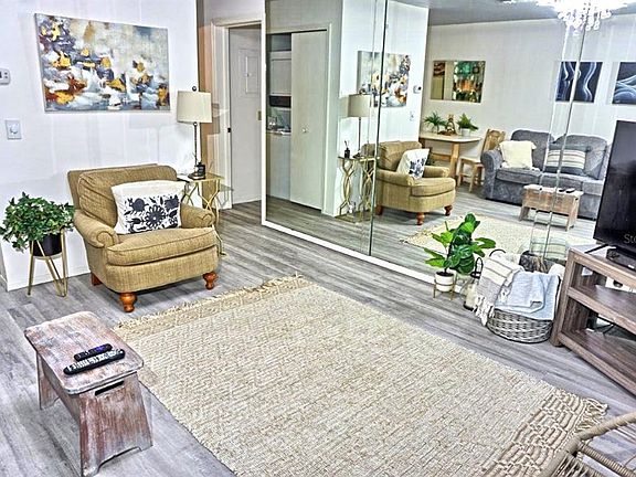 Neutral colorsFurnished condoQueen sofa bedMirror accent wall