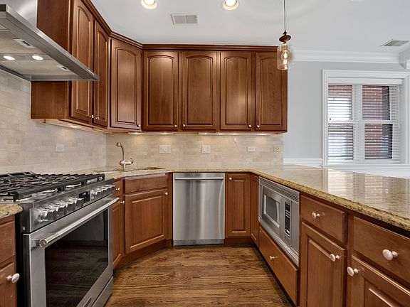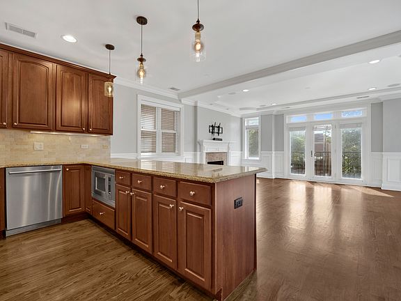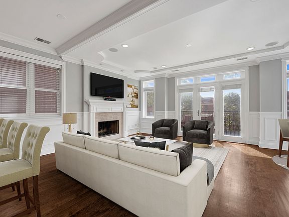 Available now! Welcome home to your bright and spacious 2 bed, 2 bath gem in the heart of Roscoe Village! Thoughtfully designed with custom finishes, this condo features trey ceilings, wainscoting, hardwood floors, crown molding, a professional sound system, and abundant natural light. The gourmet kitchen is a chef's dream with high-end stainless steel appliances, ample cabinetry, and a breakfast bar that flows seamlessly into the spacious living room. Enjoy cozy evenings by the fireplace, and plenty of space for a full dining table - perfect for entertaining! The primary suite offers a walk-in closet, private deck, and a spa-like bath with Jacuzzi tub, separate shower, and dual sinks. The second bedroom is generously sized with access to a full bath. Enjoy the convenience of in-unit laundry, ample storage plus a large basement storage closet, and garage parking. Located steps from Roscoe Village's vibrant shops, restaurants, and cafes, and just a short walk to the Brown Line for easy commuting. Situated in an excellent school district, this home offers the best of city living in a charming neighborhood. Garage parking available for an additional fee.