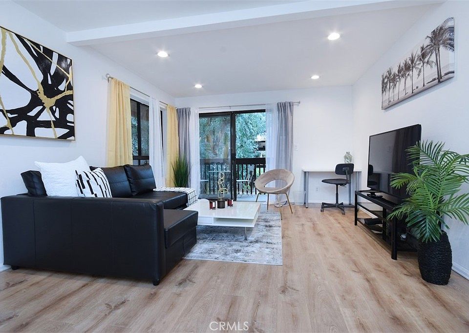 Welcome to this beautiful 2 bedroom, 2 bath condominium located in a prime area of Woodland Hills! This recently renovated end unit is situated on a desirable corner with a large balcony overlooking the greenery and tree lined courtyard. Enter into the light filled, spacious living room that offers an open floor plan and blends seamlessly with the dining area and kitchen. Enjoy cooking in this sleek and sophisticated remodeled kitchen with new countertops, new cabinets and stainless-steel appliances. Retreat to the primary bedroom with a large walk-in closet and newly updated en-suite bathroom that includes modern double sinks, a new shower with stylish new tile, new flooring and lighting. There is a sizable second bedroom with 2 custom closets that offer plenty of storage. The accessible second bathroom has also been updated complete with contemporary floating sink, new flooring, and new lighting. Other features include central air, newer flooring and recessed lighting throughout, and 2 assigned, side by side parking spaces. There is a resort style sparkling pool surrounded by luscious landscaping along with 2 separate spas, tennis court, gym, large recreation room and clubhouse. Gated community and conveniently located near Westfield Topanga & The Village, Warner Center Park and many great shops and restaurants on Ventura Blvd. Easy access to freeways and canyons make this property one of a kind!