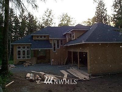 Gorgeous 6 1/2+ acre hm site cleared bldg envelope is surrounded w/trees, cedar & firs. Unique 4 bd, 2 story plan w/upstairs den, tiled mstr ba w/separate vanities, jetted tub, bonus rm, lrg frml entry & foyer, huge island ktchn w/stainless steel appl, fam rm w/gas fp, util rm w/shower + outside access door. 9 ft ceilings on main level, hrdwd floors in powder, ktchn & nook. Brushed nickel fixtures & hardware, maple cabinets throughout, granite countertops,1608 sq ft unfin basement