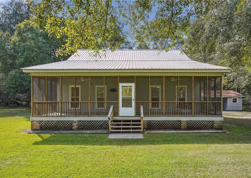 What a find! Well-built custom home located on 2.134 acres in country setting with huge screened sleeping porch across the front; yet within Abita Springs School District and conveniences of city life! Abita Brew Pub, Restaurants (3-5 min), Shopping in downtown Covington (10 min), Commuting from Mandeville Causeway (25 min) Winding, tree-lined private road leads to an oasis of cleared land and Pond! Owners have enjoyed paddle boating there! This comfortable home features oversized rooms for large gatherings! Huge Great room at entry, large eat-in country-Kitchen has granite counters & modern Appliances! Rear Sunroom has closet and has been utilized for many purposes! A wood Ramp provides easy access from outside! There are two Bedrooms and two Bathrooms downstairs, one with en-suite! Upstairs hosts two newer, oversized Bedrooms with Full Bath built out in 2023! Brand new Closet Systems installed! Brand New Luxury Vinyl Plank flooring downstairs! Icing on this cake is the Metal Roof, less than 10 years old! Newer Insulated Windows! Upstairs HVAC 2yrs young! Downstairs Unit apx 11 years, routinely serviced! Home features Copper pipes, Interior Laundry room with storage! All electric home has gas line available in laundry room though a new propane tank will be needed for functionality. Well was pumped very recently and passed inspection; Septic System drains to filter bed at rear of property and has also been recently inspected. Double Carport doubles as workspace with attached Workshop outfitted with electricity! In Abita Springs you'll find blue ribbon schools, music venues, sports fields, trailheads and so much more! Property has never flooded; there is underground drain and pond is self-draining. Flood Insurance only $1212/yr- assumable! Call to tour today!