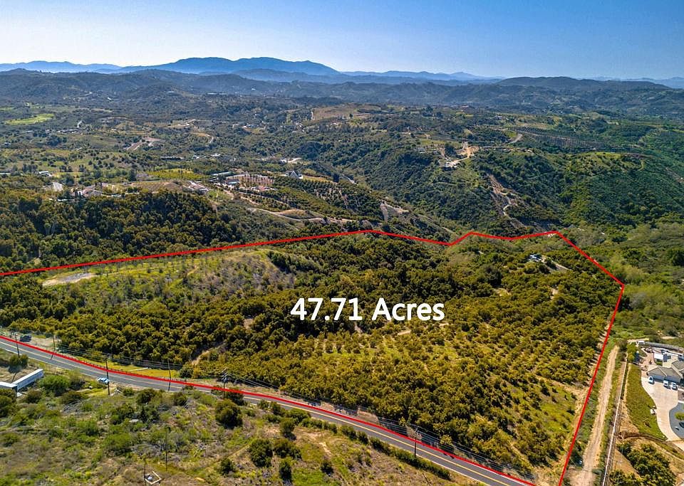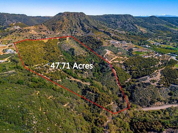 Welcome to this incredible 47-acre property, where 28 acres are dedicated to a meticulously managed Hass avocado grove, featuring 2,630 trees, 300 of which are still maturing. In addition to the grove, the property boasts a seasonal creek and a beautiful site that may work for your dream home. The grove has seen significant growth, increasing from 145,000 lbs harvested when purchased in 2019 to nearly 275,000 lbs in 2023, with approximately 25% more room for expansion based on the current tree count. There are additional acres available for planting, should a new owner wish to expand, including 5 acres with space for an additional 800 trees which is pre-approved for RCWD/District's CropSWAP program (for more information, see https://www.ranchowater.com/297/CropSWAP). A 3 inch water meter and a well are on the property. The property is nearly fully fenced, with five gates, four of which are accessible from Carancho Rd. Well-maintained dirt roads facilitate easy harvesting, and a 3-phase electric meter is already installed. The property also features four 10,000-gallon holding tanks for the well. The A-1-10 zoning offers flexibility for building an expansive estate home with sweeping valley views, or the potential to split the property into four 10+ acre homesites. Plus, no HOA!