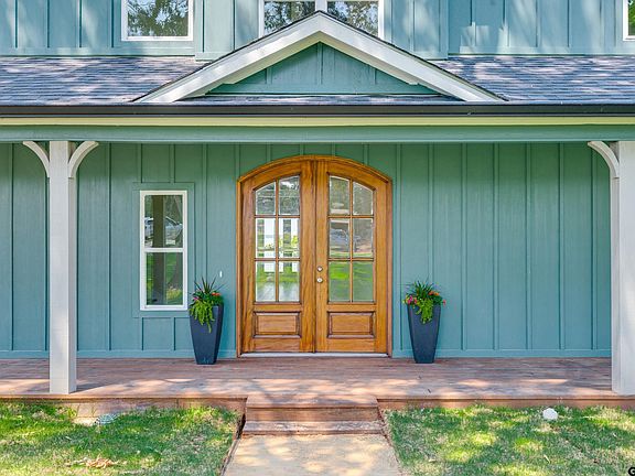 Dreaming of that perfect lake home with expansive water views, a beautiful shaded lot with mature trees, new construction, front and back porches for lazy afternoons, and room for all your family and friends for adventures at the lake---here it is! This Healey custom home was designed to meet all your wants, needs and provides a few unexpected pleasures as well. Enter to breath taking open water views in this open living plan. The custom kitchen with Astoria Granite counters and back splash is sleek, functional and will be a dream to work in. There are stainless steel Thor appliances, with a pot filler over the stove, a second oven, and the island with a large farmhouse sink also has room for family seating plus there's a huge butler's pantry. Fabulous water views from here, the dining area and living room with access to the covered porch for additional outside eating and living space. ALL living rooms, and bedrooms have Satterwhite Rough Spruce wood beams in enhance the ceilings. All wall edges are rounded. The down stairs master bedroom accesses the porch as well and has a wall of windows taking in the water view. The master bath is amazing with Calgary Onyx tile floors, Satori Calcutta Dorado tile in the walk in shower you might not want to leave, as well as a slip soaking tub. The double closet is room sized with built ins. Upstairs is a coffee bar thoughtfully placed on the landing next to a second laundry. Here you will find a Second Master Bedroom with those AMAZING views and a bath that mirrors the one on the ground floor. There are three additional bedrooms and another custom bath to complete this floor. A boat house is under construction with covered seating, a 12'x12' sun deck and a 10'x26' boat slip with lift along with a storage room. A bulkhead protects your shore line and water here is deep. There is a bug misting system on the porches to keep your outdoor space pest free and the front yard has an automatic sprinkler system. Call now!!