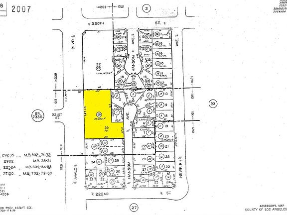 The subject property is a commercially zoned land parcel of approximately 39,377 square feet that has 247 feet of frontage on the primary corridor of Avalon Boulevard in the City of Carson. The parcel is irregular in shape as it has 82 feet of frontage on the back portion of the lot that fronts a cul-de-sac street (Hansome Avenue) which has SFR’s (Single Family Residences). The property is vacant other than a 1,363 square foot building constructed in 1937 that has been used for business offices for the owner for the past several years. The property will be delivered vacant “as-is” at the close of escrow. This offering provides a multitude of potential development opportunities including multi-residential, commercial and mixed use. Buyer to verity with City of Carson the zoning uses permitted and development standards for its intended use and development.