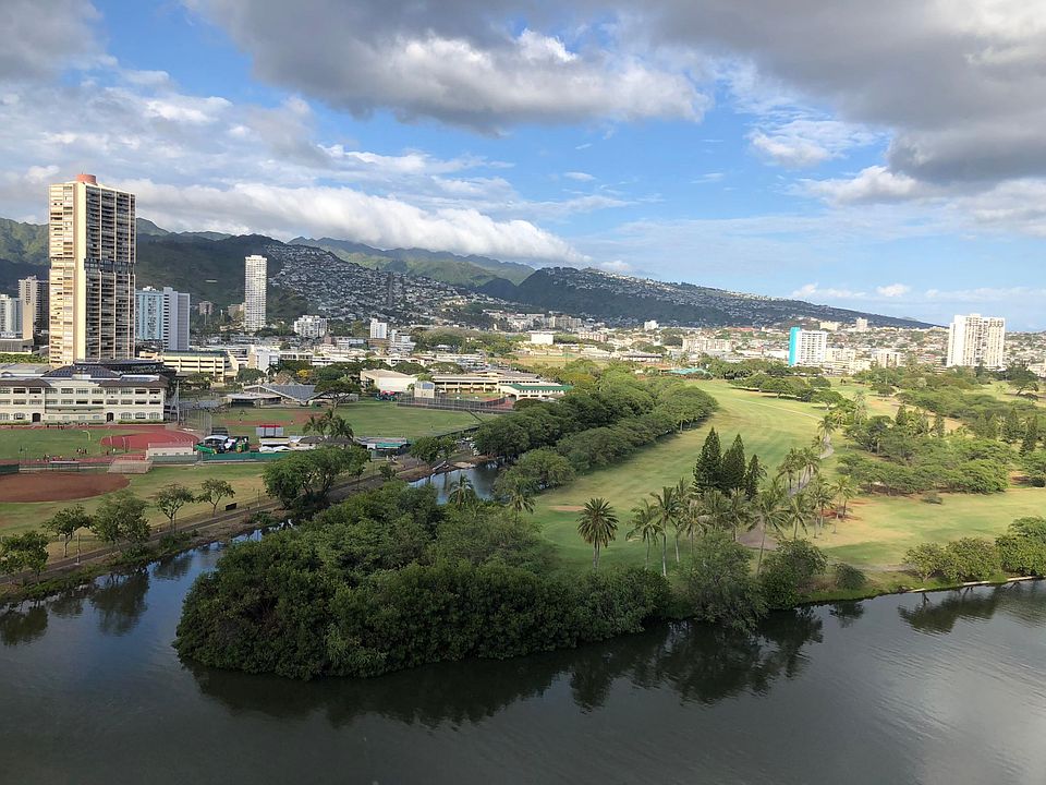 Alohalani. 1 bdrm, 1 bath, 1 COV'D SEC'D PARKING with unobstructed views of the Ala Wai! Cool! Great location.