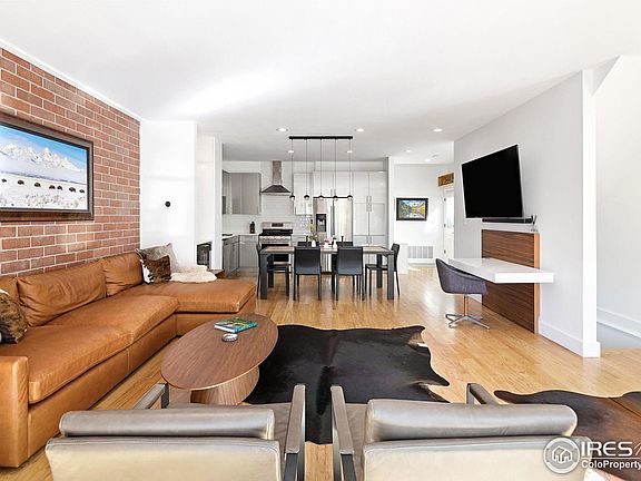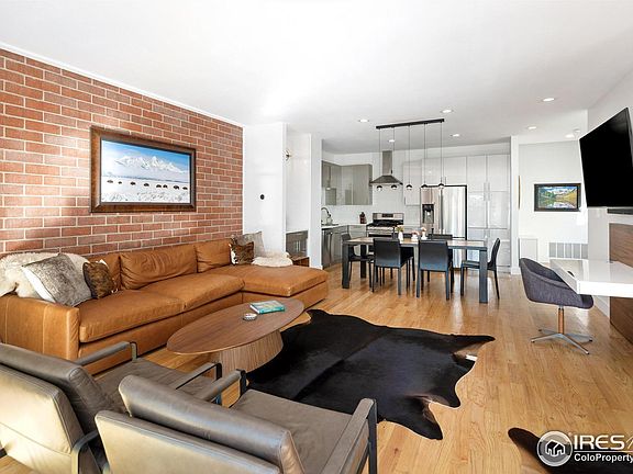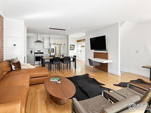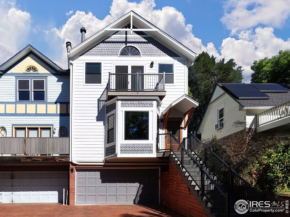 Walk or bike to Pearl Street, CU Football Games, Sundance Events and all that Boulder has to offer from this stylish contemporary row house with an attached two-car garage. With sophisticated design and abundant natural light, this home blends modern updates with timeless charm. Gorgeous oak hardwood floors flow through the main living area, where exposed brick walls and a wood-burning stove create a warm, inviting atmosphere. The updated kitchen opens seamlessly to the living space-perfect for entertaining.The top-level primary suite is a true retreat, featuring cathedral ceilings, dual walk-in closets, a remodeled luxury bathroom, and a private balcony with stunning Flatiron views. Recent improvements include a warrantied roof (2022), newer gutters, newer HVAC and water heater, windows, sewer line, washer/dryer, fresh interior and exterior paint, carpet, as well as a newer back deck with pergola, fencing, and tiered landscaping. With no HOA, this single-family residence offers both privacy and convenience, sharing just one concrete wall. In the heart of Boulder, this thoughtfully updated home is a must-see!