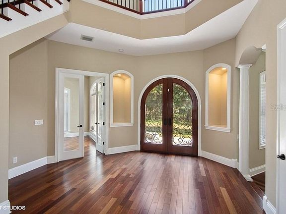 This spectacular home was completed in late 2007, and with over 5000 s.f. on 4.5 acres and added 1434 s.ft in 2019 ,it stands in a class by itself in present available executive homes. From the moment you turn down the private, Magnolia lined drive, you will feel the serenity of the gorgeous treed, private lot. Built with the finest materials, inside you will find granite in all wet areas (incl. 2 laundry rooms), 42" cabinets in the kitchen and laundry, crown moulding throughout, and many custom touches; Brazilian hardwood floors, Belcaro lighting fixtures, 3 gas fireplaces, a gourmet kitchen, custom hardwood entry doors w/ glass and iron inserts, red brick and many more features! As you make your way into the home, step down into the spaciousness of the 24 ft. ceiling family room and look out through the massive arched design of the Peachtree windows and doors that make up the entire southeast wall of the room. The kitchen is to your left and includes a dual energy range, and 6' fridge/freezer. The master suite includes a double trey ceiling, a screened lanai, and a 14x12 walk in closet. Looking down into the great room is a loft sitting area. Other features include a media room w/ surround sound, office with full bath, built to be converted to in-law quarters w/ kitchenette, 4 car garage incl. drive thru back door, 300ft well with 4" water source (no water bill), tankless water heater for upstairs, radiant barrier plywood used in roof construction (energy savings), and much more. You will love this home!