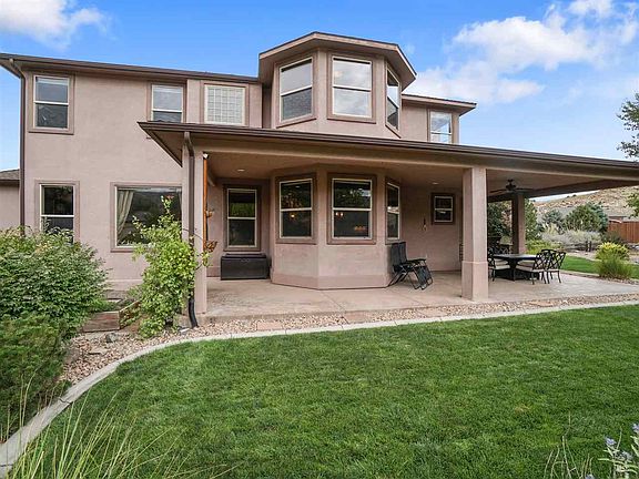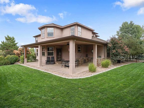 Check all the boxes - this Grand Junction, CO home has it all! Location, views, and great living space! This stunning two story Redlands home is ready for you! The main level boasts a grand entry, office, formal living/dining rooms, a gorgeous chef's kitchen, a welcoming family room with gas log fireplace, guest bathroom, and an eating nook with direct access to the back patio and the outdoor kitchen! Up the winding staircase you will find two master suites, the more luxurious of the two having a sitting room with direct views of the Colorado National Monument and fabulous 5 piece bathroom, plus two additional bedrooms and full hall bathroom. Sitting on just shy of 1/2 acre this lot is manicured with gorgeous mature landscaping, covered patio, cement curbing, garden area and trees. All the upgrades you'd expect in a custom home; hardwood flooring, granite, tile, two tone paint and more!