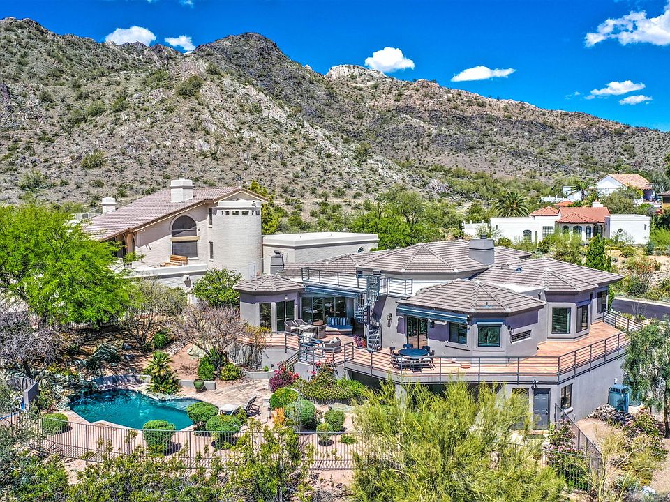 ON quiet cul de sac with walk out access to PHOENIX PRESERVE. MULTI MILLION DOLLAR 360 VIEWS; from the front, back & SIDES. WINDOWS EVERYWHERE!! Sophisticated & sleek contemporary with cement counters in kitchen & baths. Sumptuous master suite with sitting room (could be nursery/exercise room/office/) grand room sizes MANY FIXTURES FROM RESTORATION HARDWARE Dramatic views everywhere you look, one of a kind property. Roof redone 1 year ago, also sump pump, & hot water heater. 3 bedroom 4 bath with resort style tiered yard, pebble tech play pool w/waterfall, 3 fireplaces (DR/ LR a dual, MBR and outside) skylights in stairwell & powder room. Bring the outside inside w/sliding doors & windows feel nature , soaring ceilings
