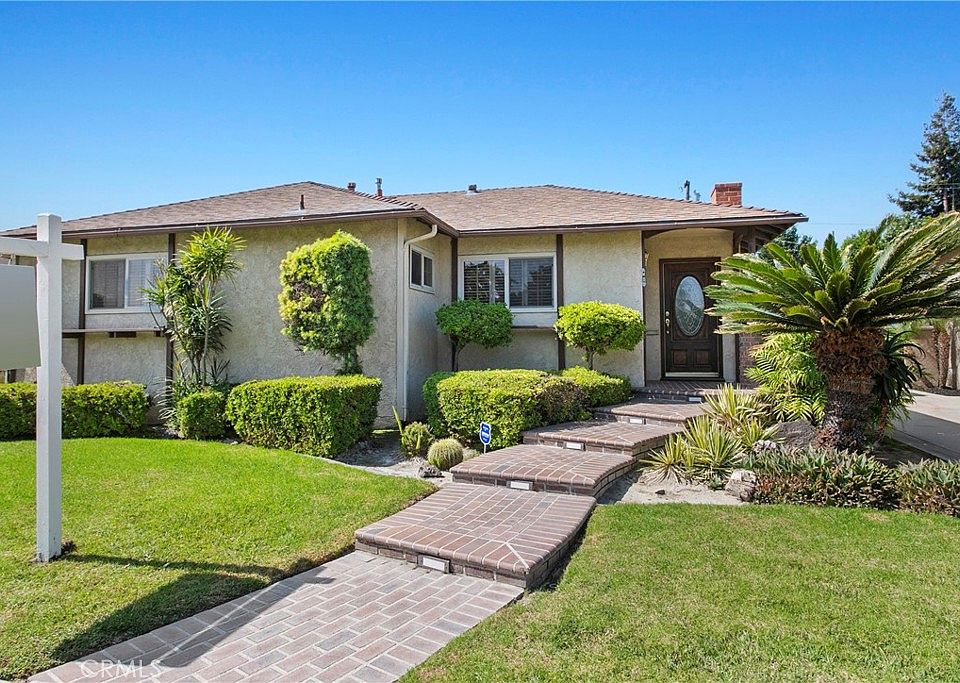Fantastic purchase opportunity on this spacious 3 br 2 ba single story home located in the popular "Los Altos" neighborhood. Beautiful curb appeal with brick lined hardscape, glass insert entry door, formal living room with marble fireplace, separate step down family room with sliding doors to patio and wet bar with sink, dual pane windows and slider throughout, plantation shutters, updated kitchen with newer cabinets and custom tiled countertops & backsplash, spacious pantry, forced air heating and central air conditioning (newer ducting 2020 and new AC condenser 2022), original house replumbed in 2005, tile floors in kitchen and bathrooms, recessed lights, hardwood floors under the carpet (except for the step down family room), ceiling fans, covered patio with tile floors and rollup shades, 2 car detached garage with dual pane window, built in cabinets, 220 outlet, laundry area, newer sectional garage door and epoxy coated floors, sprinklers on timer, gas line available for outdoor bbq, wrought iron gate to the driveway, extra storage sheds behind the garage, and huge backyard for entertaining. Don't miss out!