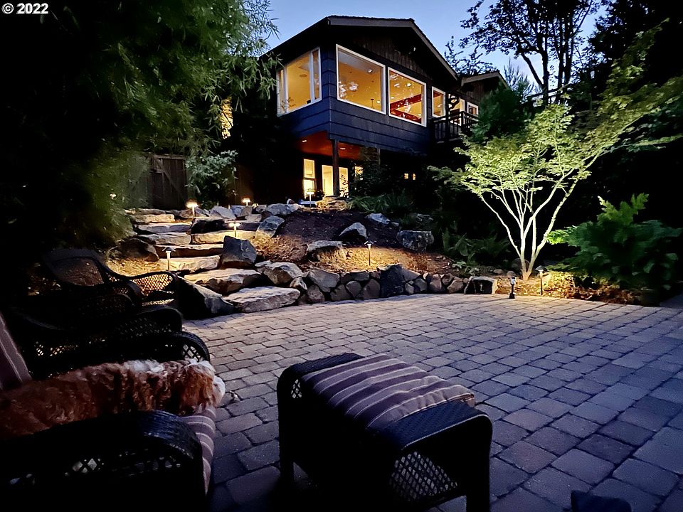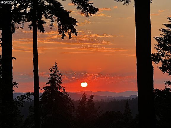View stunning sunset views of the coast range and beautiful morning sunrises from the expansive deck. Relax in one of the many peaceful sitting areas situated in the ultra private Japanese garden style inspired yard with water features, bridges, rustic fire pit and charming tree fort. This 1/2 AC+ property is truly a nature lovers delight. PRIMARY-ON-THE-MAIN. Wall of windows surrounds the chefs gourmet kitchen. Newer furnace/AC, roof, tons of storage. Lake easement and Greentree pool rights.