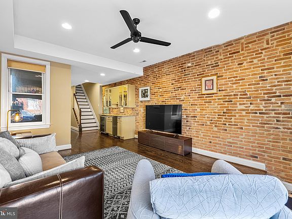Love to entertain? This home is for you! No expense was spared in this beautifully renovated & impeccably maintained home that is loaded with upgraded features and finishes throughout the nearly 2,500 square feet of finished living space. The charming brick front exterior welcomes you into a spacious & open first floor with tall ceilings, hardwood flooring, and exposed brick walls- all features that are carried throughout. The first floor includes a large living room, a wet bar- a perfect use of the space, a conveniently located half bathroom, a separate dining room, and a well designed cook's kitchen with breakfast bar, upgraded appliances, double ovens, and a pantry closet. The kitchen leads to the rear PARKING PAD and there is a covered, gated area that is perfect for bike storage. The smart design continues upstairs where you'll fall in love with the primary bedroom suite complete with vaulted ceilings, a large walk-in closet, and ensuite bathroom with double bowl vanity. A surprisingly large laundry room, 2nd full bathroom with jetted soaking tub and another large bedroom with vaulted ceilings, double closets, and a private balcony complete this level. A set of interior stairs off of the central hall leads to the show stopper of this home: a large, maintenance free rooftop deck with a built-in outdoor kitchen and stunning water and city skyline views. The fully finished lower level includes a 3rd bedroom, a 3rd full bathroom, an office nook, multiple storage closets, and a bonus room/flex space that could be used as an office/den/hobby room/home gym, etc. Original features such as stained glass and exposed brick walls highlight the warmth and character of this historic home while the smartly designed renovation caters to the ease and comfort of today's lifestyle. Located on a charming tree lined street, with Patterson Park at your doorstep and within an easy stroll to Johns Hopkins Hospital and the dining, shopping, and nightlife of Fells Point & Canton, this home is a must see.