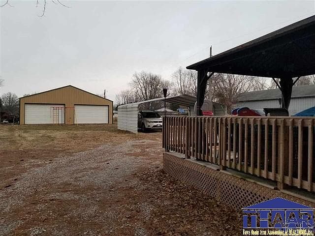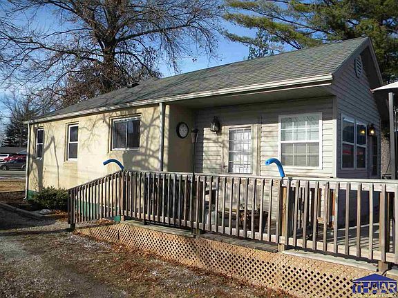 Currently zoned Residential but would make excellent opportunity for Commercial Business. 2 bedroom, 1 bath, large kitchen and living room. Clean dry basement, large deck in back, carport, 40 x 81 pole barn with five 16' x 9' doors and partial electric service.