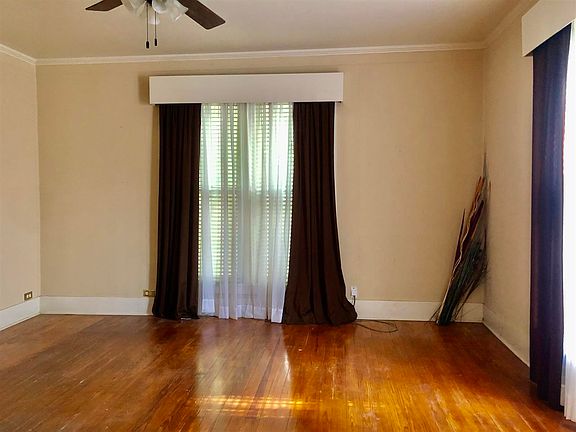 2 Bedroom 1 bath, 2 Living areas, Formal dining. Kitchen has a breakfast area with ample Cabinet space with a Butlers Cupboard and a Pantry. Laundry room is decent size. Original Wood Floors. Beautiful dining room doors with glass doorknobs. This Home could be a 4 bedroom as it boasts a lot of space. Partial chain link fence at the Alley entrance, the Home does have a driveway that leads to the detached garage.