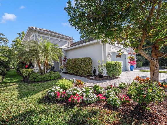 Built in 2019, this PET-FRIENDLY 3 bedroom plus den SINGLE-LEVEL villa offers a tranquil backyard setting. Situated in the X-zone, this home benefits from LOWER INSURANCE COSTS! A custom glass front door welcomes you into an open floor plan with tons of light, spanning over 1,800sf. The gourmet kitchen boasts an island, quartz countertops, a tile backsplash and a NATURAL GAS range all complimented by shiplap detailing around the island. Crown molding runs throughout the home, accentuating the high ceilings and 8' DOORS! The primary suite, featuring brand new carpet, offers a luxurious bath and spacious closet with custom shelving and upgraded hardware. Additional updates include IMPACT WINDOWS/DOORS throughout including POCKET SLIDERS opening to an EXTENDED lanai with an additional outdoor paver patio, as well as low voltage exterior lighting in the front and back. The home also includes a custom wall unit with a shiplap accent wall in the family room, wood shelving in the pantry, a laundry room with extra storage with wood shelving and upper cabinets and an epoxy-coated garage floor. Hardwired security cameras provide peace of mind, while privacy landscaping enhances the serene backyard setting. This peaceful, gated community is centrally located, only MINUTES from DOWNTOWN NAPLES, fabulous shopping, restaurants and pristine beaches! Neighborhood amenities include a beautiful clubhouse, pool and spa, fire pit and a dog park! LOW HOA FEES includes Hotwire fiber optic TV and internet (no Xfinity!) + lawn care and irrigation. NO CDD.