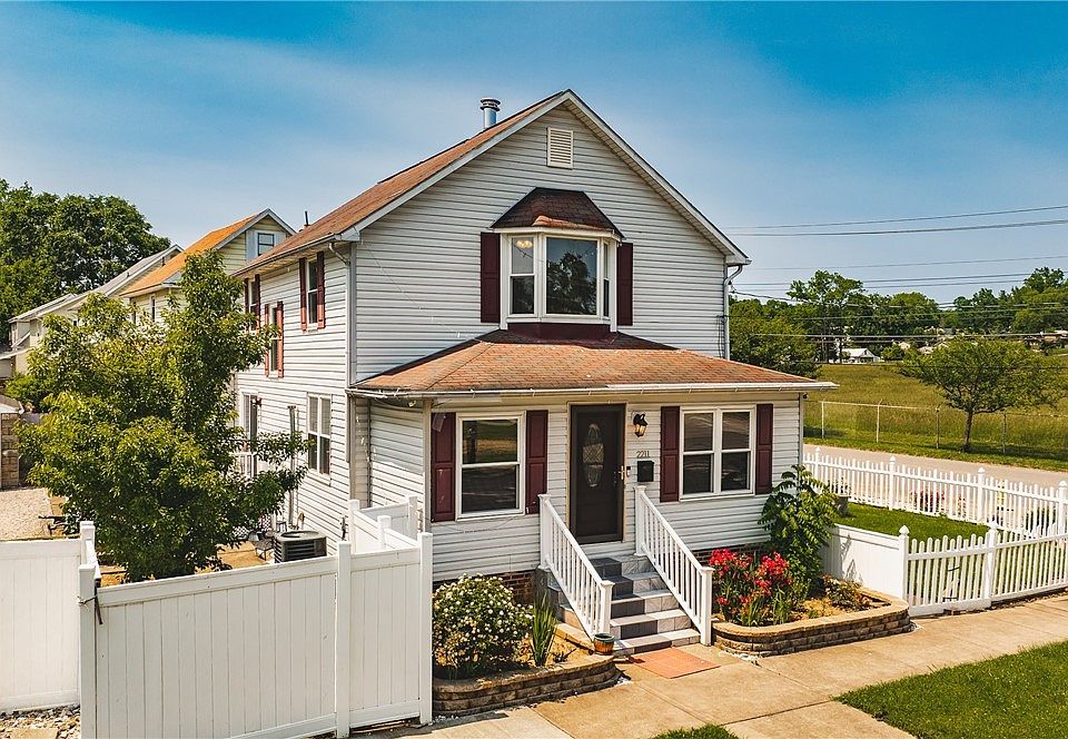 Welcome to this charming two-story conventional-style home offering 4 bedrooms and 2.5 baths, perfectly situated on a desirable corner lot. Nestled on a double lot, the property is partially enclosed by a white vinyl fence, providing privacy and curb appeal.