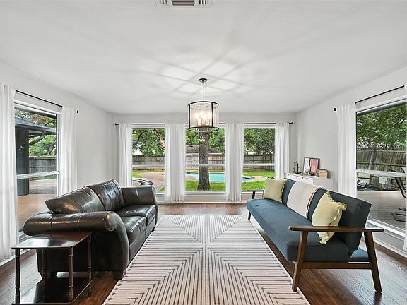 Welcome to this gorgeous, move-in-ready bungalow. This open, inviting living space, features wood floors, a wood-burning fireplace, and multiple sitting areas—perfect for hosting family gatherings or relaxing evenings. Expansive windows provide backyard views that flood the space with natural light. The tastefully updated kitchen features granite countertops, a center island cooktop, stainless steel appliances, and opens to a light and airy dining area with built-ins for additional storage. The primary suite also features wood flooring, plus an ensuite bath that includes a massive walk-in shower, dual vanities, and granite counters. Two additional bedrooms share a separate bathroom with granite finishes and generous storage. Step outside to an expansive wraparound deck that features two distinct patio areas. Whether you're hosting a summer party or enjoying a quiet evening under the stars, this outdoor space is ready to accommodate it all. Beyond the deck, the tree-lined backyard is truly something special. It features a sparkling pool for warm-weather fun and plenty of space for kids, pets, and guests to run, play, and enjoy the outdoors. A rear-entry garage adds both privacy and curb appeal. Don’t miss your opportunity to own this rare gem—schedule your private tour today!