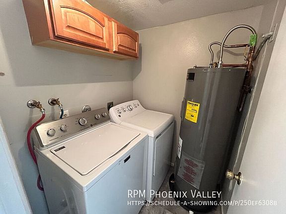 Updated 2BD/2BA townhome featuring stylish modern touches throughout. Enjoy vinyl plank flooring, an updated eat-in kitchen with granite countertops, white shaker cabinets, tiled backsplash, and stainless-steel appliances. The living room showcases charming wood ceiling beams that add warmth and character to the space. Upstairs, you'll find two carpeted bedrooms and two beautifully updated bathrooms. The private rear courtyard offers direct access to your assigned covered parking space. Washer and dryer are conveniently located inside the unit. Prime location close to shopping and quick access to I-17 and US-60 for an easy commute anywhere in the Valley. Pet-friendly for up to two spayed/neutered pets with a $350 fee per pet.