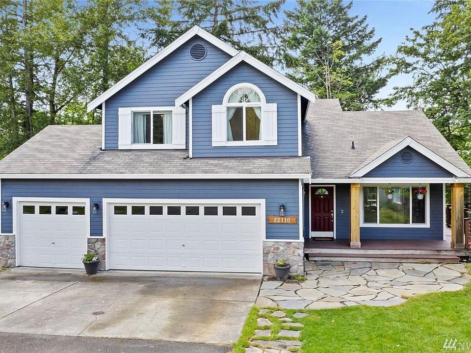 Move-in ready Bothell beauty on a private green belt. Huge 700 sqft composite deck wraps around to the covered front porch. Upgrades include - Hardwood floors, custom kitchen cabinets, quartz counters, stainless appliances & french doors + brand new master bathroom with walk-in shower. The lower level features a large bedroom, updated bathroom, office space, bonus area W/ additional storage + access to the covered hot tub. Great location, 3 car garage & Air Conditioning; welcome home!
