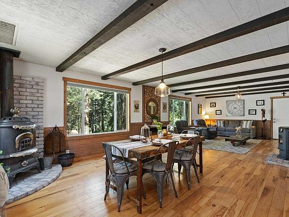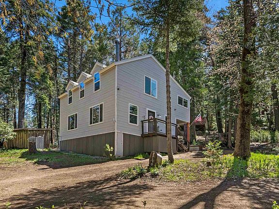 Summer is here and it look like this charming home could be listed on Airbnb! However, it has been loving remodeled only as a getaway for family and special friends. It is such a pleasure to walk in cozy cabin with a vintage wood stove in the dining area and efficient pellet stove in the living room. Surrounded by majestic cedars, firs and oaks you have a very private view from every window of your forest. The owners just had to name it 'The Tree House". The kitchen is a chef's dream with granite counters, lots of counter space and storage. A brand new refrigerator is waiting for you and and the stove and washer/dryer are just like new, too. The bathrooms were both totally remodeled and you'll appreciate the new fixtures and decorating - fabulous finds throughout! In addition to the three bedrooms, there is a large sunroom they use for an exercise area. Covered porch has so many possibilities. A vintage shed is waiting out back for all your tools and sleds. Plus lots of storage under the cabin with good access. A small generator is tucked away for you too that only has about 10 hours of use. The cabin could be so great for solar as it is all electric. Like a wrap-around deck? Plans were drawn and that just may be one of your first projects. There might even be room for an ADU/guest house! Set back from the county-plowed road with wonderful, year-round access. Come on up and make it yours!
