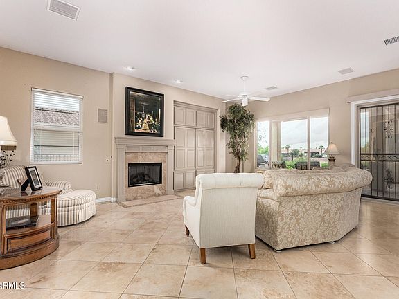 Discover this exquisite gem in the 55+ community of Sun City West! It greets you with charming stone accents, a roomy 3-car garage, and a paver driveway that sets the tone for what's inside. Pre-wired surround sound, stylish tile floors, and a sizable great room with a cozy gas fireplace make everyday living feel downright delightful. Need a creative corner? The semi-open den with built-in cabinets is ready for your office or studio dreams. Savor your morning coffee in the sunny breakfast nook, then whip up your culinary favorites in the sleek kitchen featuring SS appliances with wall ovens, granite counters and backsplash, a plethora of cabinetry, and a center island with a breakfast bar. The generous primary bedroom offers direct access to the backyard. while the spa-like bathroom boasts dual sinks, a make-up vanity, a soaking tub, and a walk-in closet. A laundry room with built-in cabinets and a utility sink keeps things tidy, and the backyard's covered patio is perfect for relaxing or entertaining. With community perks like a spa, fitness center, and more. What's not to love? This is the one for you!
