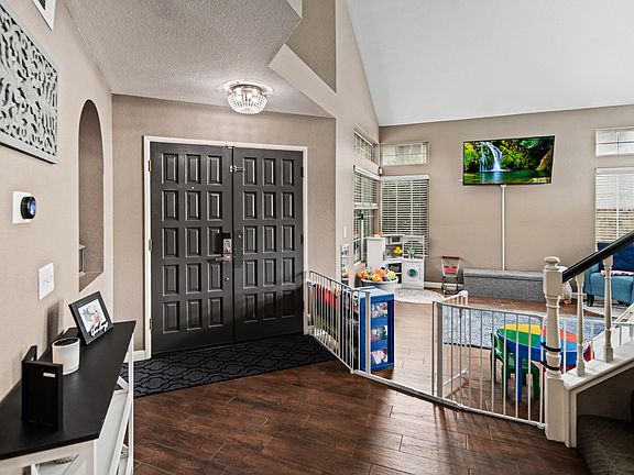 The Primary ensuite has been fully upgraded with quartz counters, tile flooring, recessed lighting, dual soft-close vanity, large soaking tub and separate walk-in rainfall shower. The walk-in closet was upgraded with double hanging racks and shelving. SEE MORE The sliding doors lead to a huge balcony overlooking the backyard with awesome views! The secondary full bath upstairs was also remodeled with matching quartz counters, tile flooring and fresh paint. Bedrooms feature built-in bookshelves and ceiling fans.