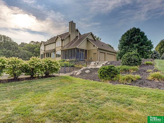 Contract Pending Contract pending - home on market for backup offers. This impressive 2-story custom-built 5-bedroom home along the Elkhorn River provides the best of so many worlds! Highly rated Elkhorn schools. Flat 1.69 acre lot backing to both heavy tree line & scenic pasture land. 20 x 40 in-ground pool. And massive picture windows to soak in the amazing views! This is an incredibly special home. Welcoming entryway steps down into large open living room w/ 2-sided fireplace. Fabulous & functional kitchen has large walk-in pantry. Unique floorplan provides main floor bedroom & office & three 2nd floor bedrooms. Spacious primary bedroom w/ incredible views & luxury ensuite w/ walk-in shower, whirlpool tub, 2 walk-in closets! Walkout finished basement well-equipped for pool parties w/ polished concrete floors, family room w/ wet bar, laundry hookups, & full bathroom. Screened deck & flat grassy yard make hosting gatherings a dream! Hot & cold H2O in garage. Attic storage. Newer HVAC.
