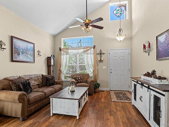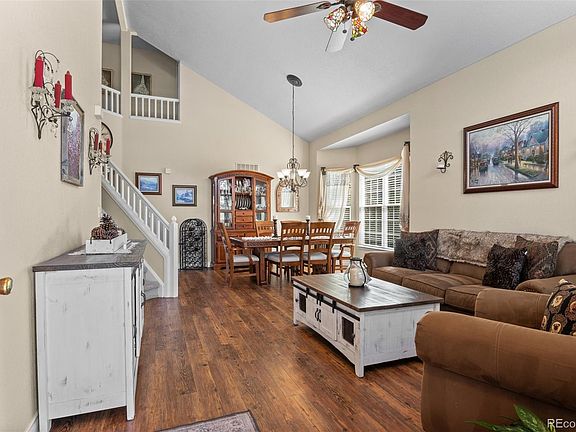Nestled at the end of a serene cul-de-sac, this stunning 4-bedroom, 3-bathroom residence is a true embodiment of comfortable living. Situated on an oversized lot, this home offers ample space for entertaining & relaxation alike. The numerous upgrades include, newer furnace, newer AC, newer whole house attic fan, & newer attic fan, making it an inviting & move-in-ready haven. Step inside & be captivated by the bright ambiance & open layout. The living & dining areas boast vaulted ceilings that imbue the space with an airy feel. As you make your way towards the rear of the house, the open kitchen beckons with its upgraded appls & inviting eat-in area. A spacious family room awaits, complete with a gas fireplace that creates a warm atmosphere. The main floor isn't just about aesthetics, it's designed for convenience too. A powder bath & laundry room add to the functionality of this level. Ascend the stairs to the upper floor, where a generous primary suite awaits. With its en-suite primary bath & walk-in closet. 3 additional bedrooms & a full hall bath complete this level, offering ample accommodation space. The basement is a versatile area, fully finished & open, with the potential for an extra bed & bath. Imagine the possibilities – whether it's a guest suite, a home office, or a recreation area. The spacious backyard is an oasis for kids & pets, offering plenty of room to play & explore. Enjoy miles of trails along the Sulphur Gulch & Tallman Gulch trails, inviting you to experience the natural beauty of the region. Home is also within an HOA that in includes an Outdoor Water park with both an Adult & Kids pool. Minutes away from Black Bear Golf Course, Downtown Parker, you'll have easy access to cultural attractions such as The Parker Arts, Culture & Events Center, the local library, shops, restaurants, & the Main street Farmer's Market. Home is within highly rated Elementary, Middle and High School (legend)! Don't miss the chance to make this property your own!