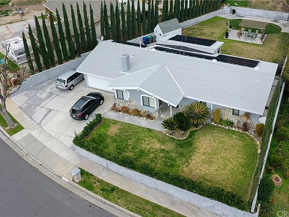 Upgrades galore in this lovely, single story home! 4 bedrooms, 2 full baths, living room, family room, kitchen area and a $60k permitted addition, built in 2017 that can be used as an extra room or a beautiful sunroom looking out to the huge backyard! This home features a new roof that was completely upgraded with energy efficient white energy star tiles, new attic insulation, new air ducts and 2 large AC units, all work done in the last 3 years, solar panels, and tankless water heater. Home features wood laminate flooring, newer carpet, wide baseboards, smooth ceilings, dual paned windows, and copper plumbing. Brand new paint and carpet in living room with beautiful rock fireplace and large white mantel. Upgraded bathrooms with newer vanities and tiled tub/showers, master bedroom has walk in closet, kitchen features granite counters, tiled backsplash, stainless stove and dishwasher. Garage is air conditioned and heated with rubber floor, cable for TV, washer and dryer included. This 13,500+ lot features large paved and gated RV parking, a beautiful tool shed and a new pergola on concrete slab which includes built in BBQ, electrical, and lighting for enjoying lovely days and evenings! Large trees along walls for privacy! Don't miss this beautiful home!
