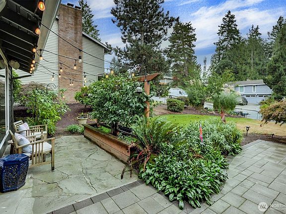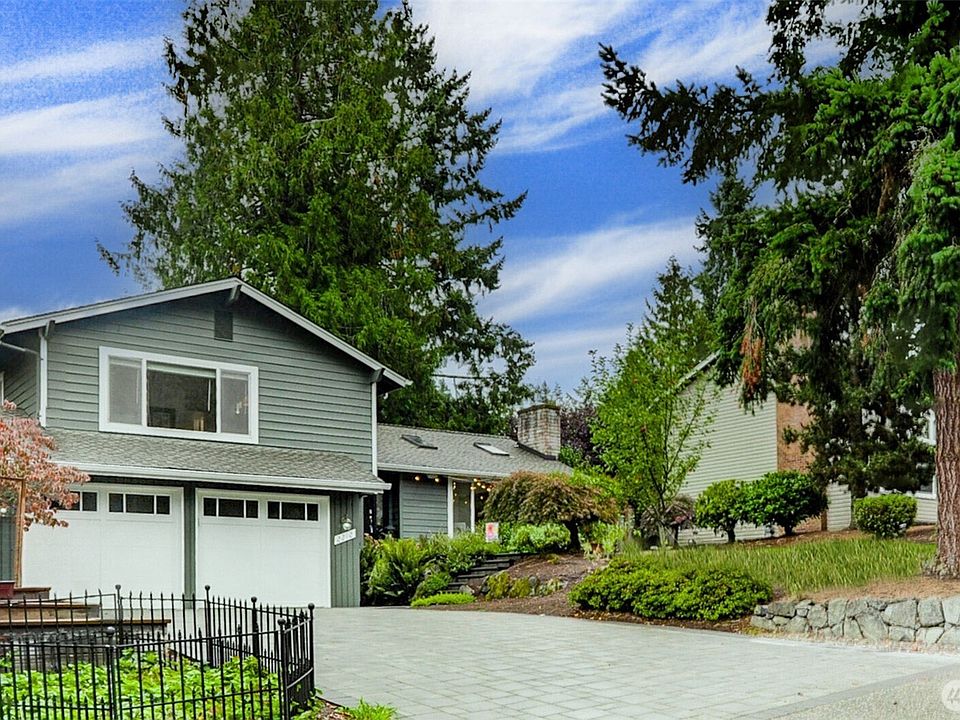 Tam O'Shanter Golf & Country Club resort style living! Unlimited golf-no greens fees. NEW: fresh exterior paint & updates in each bath. Exceptional modern craftsman tri-level w/open floorplan, cathedral ceilings & abundant natural light. Stylish kitchen w/granite, gourmet gas range, double oven, custom cabinetry & spacious eating bar. Inviting living room w/surround sound & gas FP. 4 BRs, incl. bright, roomy primary suite. Daylight lower level media center w/built-in projector. Expansive Trex deck w/ natural gas grill overlooks park-like setting w/breathtaking landscaping. Friendly neighborhood w/golf, tennis, pickleball, swimming & clubhouse/restaurant. Top-rated Bellevue Schools.