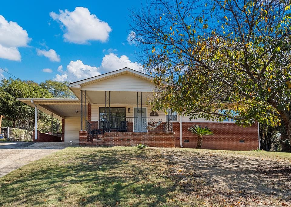 Such a charming Move In Ready 3 bedroom, 2 bath brick home located just minutes from schools, shopping, restaurants, and everything the city has to offer. With 1,596 sq ft of well-designed living space, this home features an open and inviting floorplan that flows beautifully. Nestled in a well-established neighborhood, this home has been thoughtfully updated with fresh neutral paint throughout, new LVP flooring with soft carpet in the bedrooms, beautifully tiled showers, new vanities, a new stove, a fully encapsulated crawlspace, added attic insulation, and a new roof in 2020. Truly a home that has been well loved and cared for. The Kitchen offers an island/bar area open to the dining and family rooms, providing great flow and abundant natural light. The Bedrooms are all generous in size with nicely sized closets, offering plenty of storage throughout the home. You'll also love the convenience of a separate laundry room located just off the kitchen. Enjoy slow mornings or relaxing evenings on the covered front porch - ideal for porch swinging and a cup of coffee. The fully fenced backyard offers privacy and includes two workshop/storage buildings. This home gives all the feel-good vibes. Make it yours just in time for the holidays!