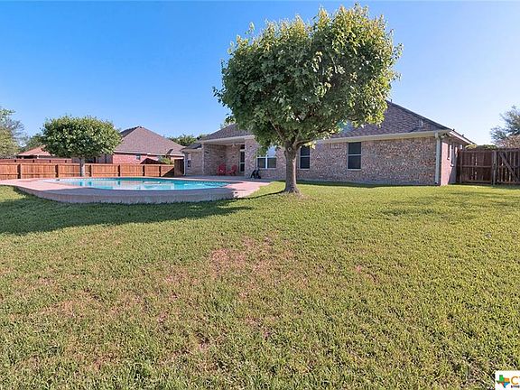 Summer comes early in Central Texas, so beat the heat this year in your very own refreshing in-ground pool. This spacious home is filled with desirable amenities inside and out, starting with the great location close to all the best in local shopping and dining. The upgraded pool is the highlight of the backyard that also includes an extensive patio area - some covered and some open. The interior has a spacious and versatile floor plan with a formal dining room with wood floors, a huge great room with corner fireplace and a gourmet kitchen that overlooks it. A wraparound breakfast bar provides easy weekday meals, and the kitchen also has granite counters, an abundance of cabinets and under cabinet lighting. A high ceiling adds depth to the owner's suite bedroom and the bathroom has a soaking tub perfect for bubble baths and relaxing. Additional owner upgrades include energy efficient solar screens, garage door opener and water heater.