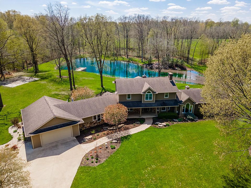 Extreme Relaxation overtakes your senses when you visit this near perfect Retreat of a Home. Check out the virtual tour, This Amazing home has 4 bedrooms, 4 full baths, 4 FP's and over 4800 sq. ft. Finished. The home sits on 8.5 acres of gorgeous landscaping, woods, and large Pond for swimming and fishing. This One owner home has recently been remodeled with Updating Kitchen which includes an Induction Cooktop, Granite countertops, Convection Microwave, Beautiful Cabinets and additional Built-ins. Other additions include a Gorgeous Family room with Built-in wet bar entertaining area, FP, and recessed lights. The First Floor Master Bedroom in-Suite. What can I say, the pictures do not even give it justice. Loads of windows, Soaking tub, large walk-in Shower, double large vanity room and Huge walk in closets with Closet Concepts creative design features. The Home has its own private pond with Waterfall, Piers, Sandy beach, Enclosed sun-room, Covered Porch areas, outdoor patio, decks, Basketball court, and Pergola area for Grilling and hosting your next outdoor party. Back Inside there are so many amenities such as Den with built-ins, Formal Dining room that has the best views of property, Three large bedrooms up, one can serve as a second primary style bedroom with its own bath, One stone FP in the Walkout basement and also a Suana. If that was not enough, An additional one bedroom Coach style house ( additional 1030 sq.ft. finished) is on the property with full kitchen, one car garage and Greenhouse. Both garages have Epoxy floors .The Grounds are just Amazing, In fact, additional property is available. ( Morton building, Pond and 65 acres ) Very important note is to realize that this home is very close to Fort Wayne, only 30 minutes to the Coventry area of Ft. Wayne, 10 minutes to either Wabash or Huntington for shopping. and this home is in Northfield high school district.