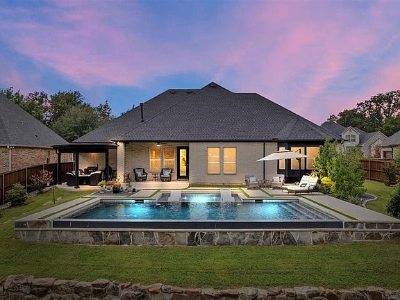 Stunning 3 bedroom, 3 bath home offering a thoughtfully designed living space. The spacious primary suite features a spa like ensuite with dual vanities, a standalone soaking tub, and a decorative tiled shower as well as very large walk in closet. Two secondary bedrooms share a stylish Jack & Jill bath, complemented by an additional full bath. Enjoy flexible living with a dedicated movie room and a private study. The open concept kitchen boasts a large island, dining area, and eat-in breakfast space, perfect for entertaining. Step outside to your private oasis with a beautifully designed pool, cabana, and covered patio overlooking a heavily treed creek and lush landscaping. A true retreat blending elegance, comfort, and resort-style outdoor living!
