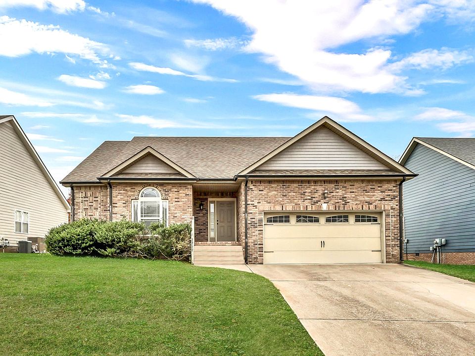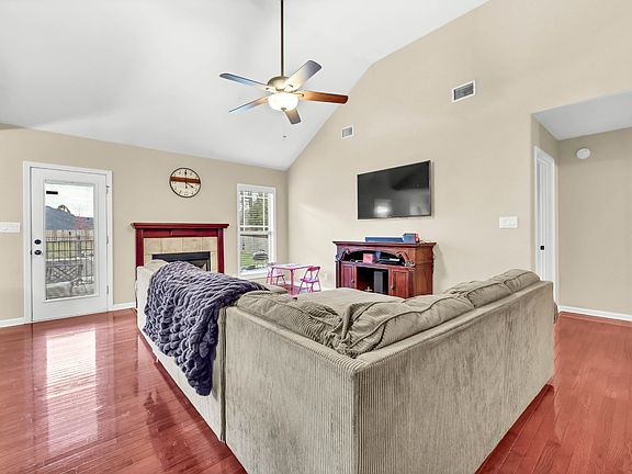 Step into a home that feels instantly inviting, where soaring vaulted ceilings and bright, open spaces set the tone for comfortable living. True hardwood floors flow through the main living areas, adding warmth and timeless style. The kitchen is both beautiful and functional with granite countertops, well-kept cabinetry, and a pantry offering plenty of storage. A dedicated laundry room with built-in cabinets ensures effortless organization. The secondary bedrooms share a smart Jack-and-Jill bathroom layout, while a spacious half bath provides added convenience for guests. The primary suite serves as a private retreat, featuring an octagonal tray ceiling, a luxurious ensuite with a separate tub and shower, expansive double vanities, and a custom-designed closet. Outside, enjoy a large covered patio perfect for relaxing or hosting gatherings, along with an inground pool ready for warm-weather fun. Rossview schools! Recent updates—including a 2-year-old HVAC system and 1-year-old water heater—offer peace of mind and added value.