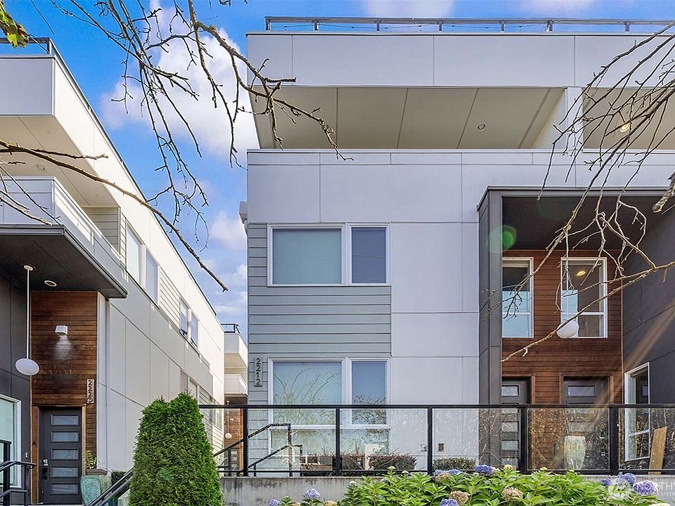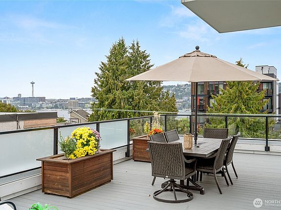 A modern Eastlake gem built by Murray Franklyn, offering top-tier craftsmanship and refined finishes. Enjoy sweeping Lake Union and Seattle skyline views, including iconic landmarks, from both living spaces and rooftop terrace. Featuring an open-concept main level flowing effortlessly to the rooftop deck—ideal for entertaining or relaxing. Plus, a versatile den/office space offers the perfect spot for working from home or extra flexibility. Situated in Eastlake’s vibrant heart—benefit from speedy commutes to SLU, downtown, and UW. Enjoy dedicated parking, a rare perk in busy Seattle neighborhoods. Interiors are freshly painted and move-in ready. Top-rated schools nearby. Don't let this rare Eastlake gem slip away, act now!