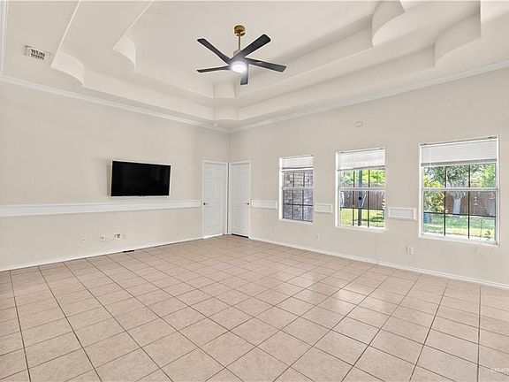 This 3 bedroom 2 bathroom Edinburg home is loaded with thoughtful upgrades inside and out. The remodeled kitchen features custom cabinets, a coffee bar, and French doors opening to a spacious patio with a pergola and above-ground saltwater pool (Can be removed if need be). The primary suite offers a fully renovated bath with dual shower heads and a custom closet, while the guest bath and living areas boast updated fixtures, lighting, and appliances from 2024-2025. A secure garage includes a French cleat wall system, folding workbench, and portable AC. Additional highlights include a whole-house surge protector, new air ducts, water heater, and heater, plus TVs, a Murphy bed, and a fireproof safe—all included. The yard is enhanced with fruit trees, raised garden beds, a shed with solar lighting, and approved plans for a casita. This home blends comfort, style, and practical upgrades—truly move-in ready.