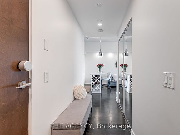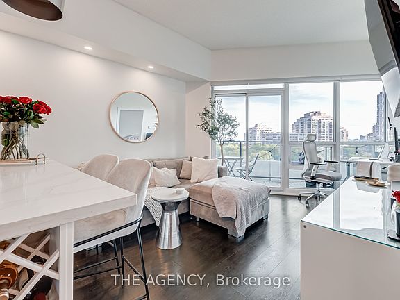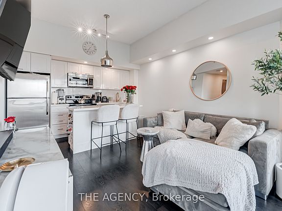 Welcome to Unit 815 at 2212 Lake Shore Blvd W a bright corner unit showcasing serene lake views and unobstructed city skyline vistas.This move-in ready suite has been extensively upgraded, featuring a modernized kitchen and bathroom with a custom quartz countertop island, matching counters and backsplash, new vanity, and sleek contemporary pot lighting. The living space is enhanced with custom roller shades, while the bedroom includes additional custom closet cabinetry for smart storage and style.With 9-foot floor-to-ceiling windows, a spacious open-concept layout, and a private balcony, the home is filled with natural light and designed for both comfort and entertaining.The unit comes with parking and a locker, this residence sits in a vibrant waterfront community, just steps from scenic trails, transit, grocery stores, drugstore, liquor store, cafes, and more.