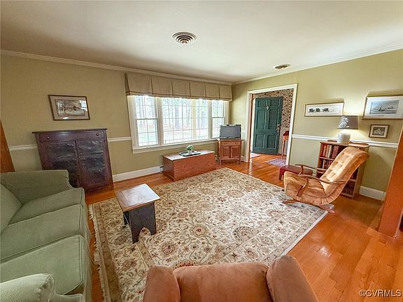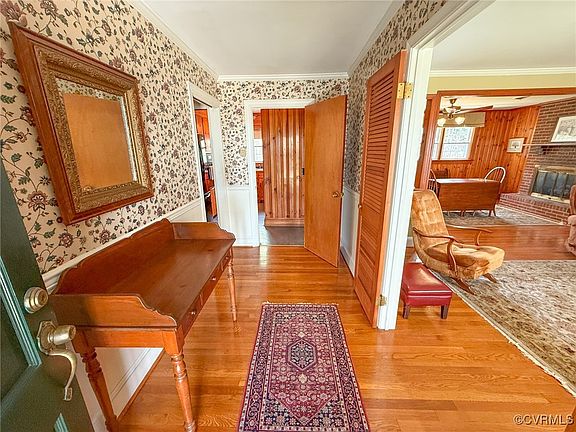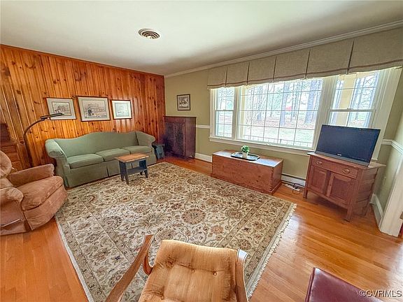Among three acres of southern pines on the Virginia countryside, you will find this all-American brick rancher! This three bedroom, two full bath home is well maintained, move-in-ready and affordable! Rare for it's year built, this home features an open-concept living area. The spacious living room features a large picture window that provides plenty of sunshine and a view of the country landscape. The dining area has plenty of room for a large dining set and it has a rustic brick fireplace with cozy gas logs. The kitchen provides plenty of cabinet and counter space and all of the necessary appliances! The primary bedroom has ample square footage for you king-sized bed and the en suite full bath features a tile alcove shower. The remaining two bedrooms are a comfortable size with plenty of space and big closets. There is a full basement that is ready to be finished. It has a "B-dry" waterproofing system and a brick fire place and hearth. The yard is excellent. The acreage is mostly wooded and provides plenty of shade and seclusion. The location is superb! It is just a couple of miles from both routes 360 and 460 so travel is a breeze! Make plans to see it today. Sold AS IS.