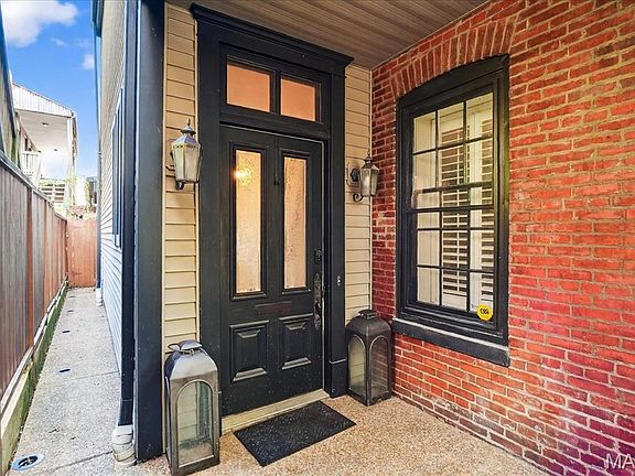 Tucked peacefully off Menard in the heart of Soulard, this red brick half-flounder is full of charm and surprises. Step inside to find exposed brick, rich wood flooring across two levels, and a kitchen ready for your inner chef with stainless appliances and a sunlit breakfast nook crowned by a skylight. The home boasts 2 bedrooms and 3 baths, including plenty of room for both entertaining and unwinding. Outdoors, enjoy a ground-level deck with pergola for perfect evening gatherings, and a low-maintenance yard that lets you spend more time enjoying than tending. Start your mornings on the gallery-style front deck—perfect for sipping coffee while taking in the peaceful front yard view. This Soulard gem blends historic charm with modern convenience, including the rare bonus of a 2-car garageport—hard to find in the city!