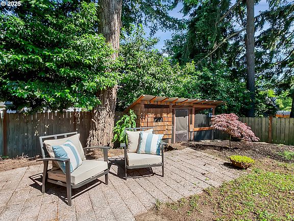 Charming Rose City home with a perfect blend of vintage character and modern updates. This light-filled home features beautiful refinished hardwood floors, classic built-ins, and a cozy wood-burning fireplace. The kitchen has open cabinetry, a range & eating nook. Easy access to the BBQ via the side door. Two bedrooms and a full bath on the main, with a versatile finished basement offering additional living space, storage, and laundry space with a washer/dryer. Two additional bedrooms are upstairs. Enjoy outdoor entertaining in the private, fully fenced backyard with mature landscaping and a deck & patio. Detached garage and long driveway provide plenty of parking. Located on a quiet street just minutes from parks, coffee shops, and all the vibrant energy of NE Portland. Roof was replaced in fall 2024, new gutters in May 2025, Furnace in 2023. [Home Energy Score = 1. HES Report at https://rpt.greenbuildingregistry.com/hes/OR10238981]