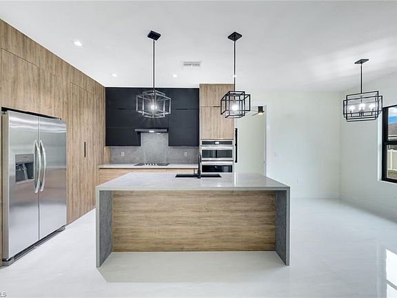 Welcome home to this beautifully crafted 4-bedroom, 3-bathroom residence, offering the perfect blend of luxury and functionality. The gourmet kitchen features custom cabinetry, while the spa-inspired bathrooms showcase marble tiles, LED mirrors, and custom vanities. Hurricane-proof windows provide both safety and style, and custom closets with built-in drawers ensure maximum organization. The energy-efficient tankless water heater adds convenience, and the two-car garage with epoxy flooring offers both durability and a sleek look. Beautiful 48x48 porcelain tile flooring flows seamlessly throughout, complementing the open floor plan, perfect for family living and entertaining. This move-in ready home is designed for those seeking elegance, comfort, and practicality. Cape Coral is a thriving waterfront community in Southwest Florida, known for its 400 miles of canals, ideal for boating and water activities. The city offers a warm climate, family-friendly neighborhoods, parks, and nearby beaches, making it perfect for outdoor enthusiasts. With great schools, dining, shopping, and easy access to major highways, Cape Coral combines relaxation with convenience.