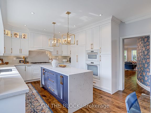 Step into this stunning custom-built 5-bedroom, 5-bathroom home, perfectly positioned on a quiet court with lots of privacy. Almost 6,000 sq. ft. of thoughtfully designed living space offers comfort, style, and privacy for the whole family. The heart of the home is the entertainers kitchen with top-of-the-line Miele appliances, waterfall island, and a convenient coffee bar, overlooking the beautifully landscaped backyard. Floor-to-ceiling custom cabinetry in the family and dining rooms adds elegance and functionality, while four gas fireplaces create warmth throughout. Upstairs, the primary suite features a luxurious five-piece ensuite, and a semi-ensuite connects two additional bedrooms. A second staircase provides easy access to the upper level, and the finished basement adds versatile space for recreation or work. The home is filled with natural light in every room, boasts spacious layouts, and includes a large mudroom, extensive closet and storage space, and generous driveway parking for 10+ vehicles. The beautifully landscaped front and back yards create a private oasis, complete with mature trees, custom stone planters, and a large backyard shed. Nestled on a quiet cul-de-sac, the home offers winding streets, walking and biking paths, and easy access to schools, parks, recreation, shopping, and Port Credit.
