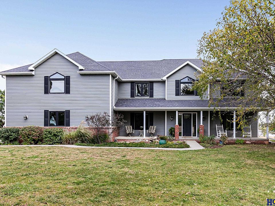 Experience an exceptional 5.29-acre estate paired with partial ownership of 65 acres of recreational land featuring two private fishing lakes plus ATV and hiking trails. This 5-bedroom, 3.5-bath home welcomes you with a light-filled great room offering a fireplace and three walls of windows, flowing into a dining area and kitchen with granite countertops, stainless appliances, and access to the expansive deck. The main level also includes an office, laundry, and half bath. The second-floor primary suite offers an ensuite bath and private deck with lake views, joined by four additional bedrooms, a full bath, and a spacious rec room with fireplace. The walkout lower level adds a family room, well-appointed wet bar, ¾ bath, and generous storage. Outdoors, enjoy a 3-stall garage, covered front porch, large deck, covered patio with hot tub, mature landscaping with water feature, and an outbuilding w/ concrete floor & electricity ideal for equipment & toys, and a covered kennel.