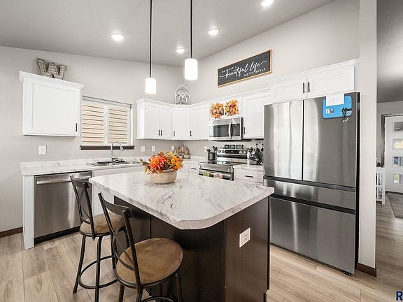 Welcome to a stunning 4-bedroom, 3-bath home built in 2021, located on the desirable west side of Sioux Falls. This thoughtfully designed home features an open-concept main level, perfect for modern living and entertaining. The kitchen flows seamlessly into the dining and living areas, creating a bright, welcoming space filled with natural light. The main level includes the primary bedroom suite, complete with a walk-in closet and a private ensuite bathroom, offering a comfortable and stylish retreat. Additional living space is found in the fully finished basement, which includes 2 bedrooms, a full bathroom, and a spacious family room with a cozy fireplace—ideal for movie nights or relaxing with family and friends. Outdoor living is a highlight of this home, huge backyard with a paved patio and deck providing the perfect setting for barbecues, entertaining, or enjoying quiet evenings outdoors. A 2-stall garage offers convenience and additional storage, rounding out this thoughtfully designed property. Located in a quiet west Sioux Falls neighborhoodDon’t miss the opportunity to make this beautiful home yours!