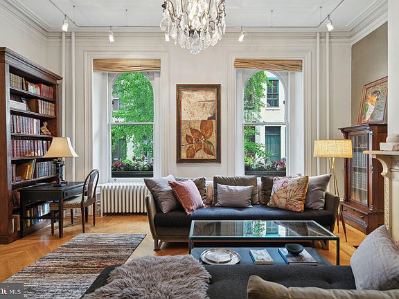 Magnificent high-Victorian Rittenhouse Manse with expansive 25’ frontage, 4 stories plus walk out lower level to a lush rear garden. This Venetian Gothic townhouse features a marble & limestone facade with arching windows and oriel bay overlooking St James street, one of the neighborhood's iconic blocks, lined with immaculately preserved homes by Furness & other notable 19th c. architects. A previous rooming house until the current owners totally restored it to single family use with noted architect & former AIA President, Susan Maxman. 10 bedrooms, 4 1/2 baths, 6 fireplaces, and over 5000 sf of living space this gracious home accommodates family & guests alike plus offers many additional uses; home office, painting studio, sitting room etc. 11’ high ceilings throughout are crowned by original plaster mouldings and architectonic details abound from intricately carved mantles to a central wraparound staircase surmounted with skylight, illuminating the center of the home. Enter the home through double doors flanking a walnut paneled vestibule, a weather break from the elements. The main level offers formal living room with decorative, carved marble fireplace, white oak herringbone floors and gallery lighting to highlight your art collection. The dining room connects from both the main hall or through a passage under the stair and is the ideal space for sumptuous dinner parties or intimate family gatherings. High ceilings, an original carved wood fireplace mantle and a deep bay window overlook the garden. The home’s "NY Loft" kitchen is a study in modern style and restraint, part of a second renovation by architect Spence Kass. Warm rift-cut mahogany cabinetry contrasts with cool gray quartz counters and frosted glass backsplash. Sleek, stainless Sub-zero and Miele appliances complete the state of the art chef’s kitchen. At the end of the main level an intimate breakfast room with original leaded glass window hovers over the garden, and a set of steps leads down to the back yard sanctuary. Ascend the central wraparound staircase to the primary bedroom level where a 25’ wide room accommodates any size bed, built-in closets, a sitting area in the oriel and a statement-making, turned and carved, decorative wood mantel. Walk-through closets join the bedroom to a private sitting room which connects to the spa-like primary bath, making this floor your private suite of rooms. The bathroom offers separate soaking tub & shower, water closet and pedestal sink. The 3rd floor has a group of 4 bedrooms and 2 baths, both rendered in original porcelain subway tiles, one features a vintage soaking tub. Two of the bedrooms serve alternative purposes, one, a sitting room and the other has been transformed into a deluxe laundry space. The home’s top floor has 4 more bedrooms and newly renovated hall bath with glass enclosed shower. The largest of the bedrooms is used as a home office, tucked into the south facing bay window. A mixture of original red pine and golden oak hardwoods cover the home’s upper floors. The lower level, originally the home’s kitchen, has direct access to both the rear garden & the street in front under the stairs (perfect for bringing bikes in from outside). Currently used as an artist’s studio, this level also makes an excellent den, playroom or workout space. Located in the award-winning Greenfield School catchment and equidistant to Rittenhouse & Fitler Squares and the miles-long Schuylkill Banks river trail, this home rests in the middle of a low-traffic, tree-lined street. Sellers will pay for a year’s parking at a nearby garage, steps from the house. Near incredible shopping on Walnut & Chestnut Streets and some of the city’s best restaurants, Vernick, Parc, Wilder and so many more. With easy access to 30th St station, Penn, Drexel, CHOP, HUP and the downtown business core - this outstanding home offers everything that makes urban living so incredible. See this stunning home today!