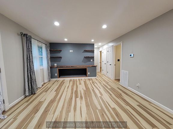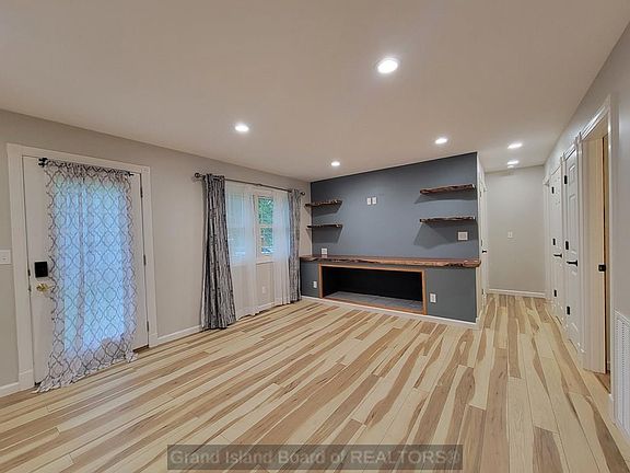 This lovely ranch is nestled in close to several schools; ready for you to call it home! Beautiful kitchen features custom soft close cabinets and granite countertops, dining area and living room are tied together with beautiful flooring, living room features a gorgeous entertainment cabinet built in! 2 bedrooms, 1.5 bathrooms and several closets round out the main floor. Downstairs you'll find a large family room with a gas fireplace, fantastic bathroom and laundry area, a legal bedroom, a finished storage area and unfinished utility/storage room. Outside you have a great detached 2 car garage that is heated and air conditioned, a covered deck with ceiling fans and drop-down TV mount, brick patio, storage-shed and playset all fenced in with plenty of grass to run on! Other highlights are newer electrical service and sewer line, roof done in July 2025, insulated attic, and more!