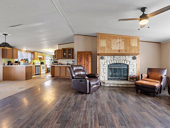 Enjoy country living with this double-wide mobile home by Clayton Homes which offers spacious carefree living on 1 acre. Motivated Sellers! This spacious double-wide with an open-concept floor plan can shine with a little TLC to bring it back to its full potential, perfect for families or investors l!! Features 4 bedrooms, 2 bathrooms with split floor plan, wood burning fireplace, dedicated dining space, new side porch, 2 car garage. Roof replaced in 2024. Low-traffic subdivision and easy access to major highways—making commutes to work and shopping easy and convenient. Live stock welcome. Being sold as is.